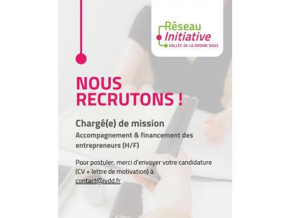 Nous recrutons un(e) Chargé(e) de mission – Accompagnement et financement des entrepreneurs (H/F)